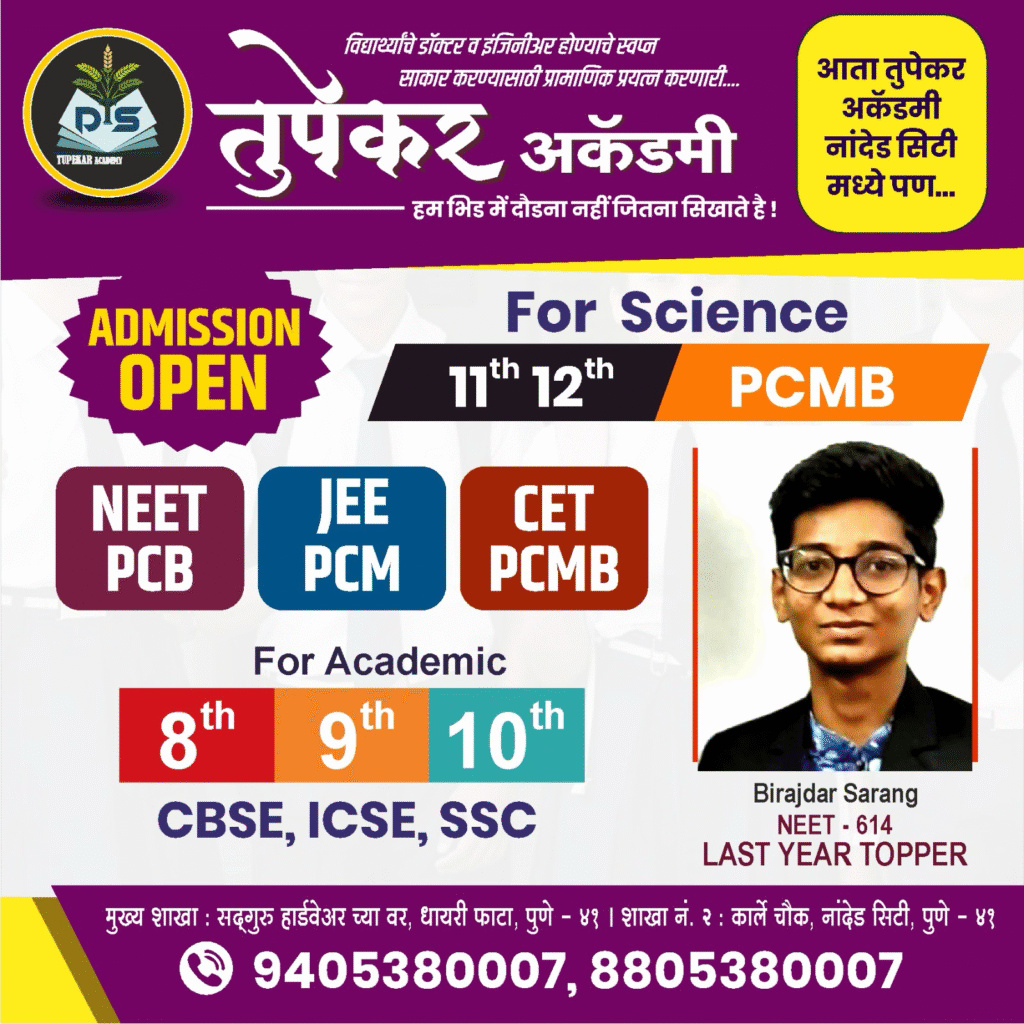 Tupekar Academyπ― Turn Your Dream of Becoming a Doctor or Engineer into Reality! π― β Specialized Coaching for NEET | JEE | CETβ Expert Guidance for 11th & 12th Science (PCMB)β Academic Batches for 8th, 9th, 10th (CBSE, ICSE, SSC)β Branches: Pune & Nanded City π Your Success is Our Mission! Enroll Now! π Contact: 9405380007 , 8805380007 #NEETCoaching #JEEPreparation #TupekarAcademy #TopResults #BestScienceCoaching #cbse #9thcbseclass #bestclassfor9thcbse #topcbseclassinnamdedcity #topcochingnearbyme